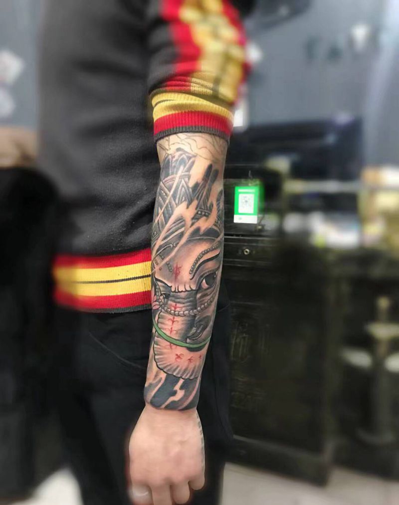 当前位置: 首页 >河北省保定市纹身店-星期八刺青纹身图案>象神包小臂修改图纹身图片_手臂新传统修改纹身图案