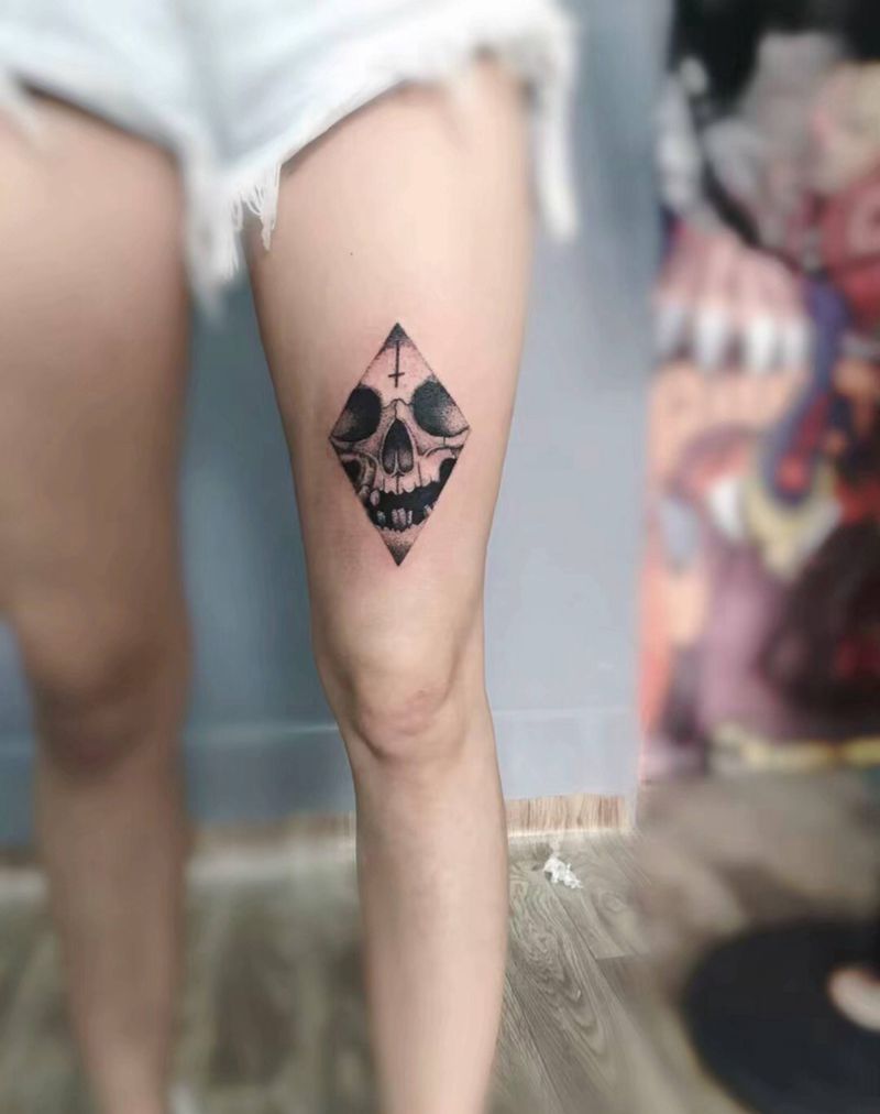 当前位置: 首页 >河北省保定市纹身店-星期八刺青纹身图案>骷髅纹身图片_腿部点刺纹身图案
