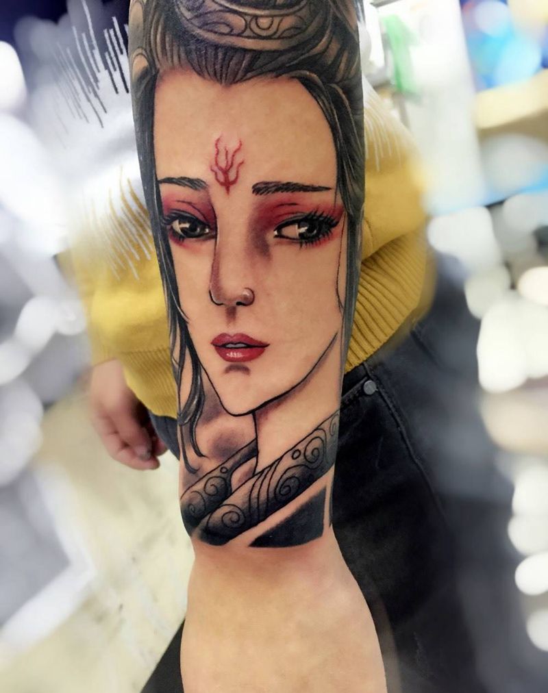 当前位置: 首页 >河北省保定市纹身店-星期八刺青纹身图案>包小臂美女纹身图片_成品手臂传统肖像人物纹身图案