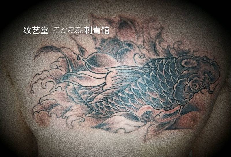 鲤鱼,遮盖纹身图片_胸部腹部传统动物成品纹身图案