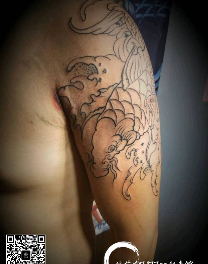当前位置: 首页 >河北省保定市纹身店-纹艺堂刺青纹身图案>鲤鱼大臂。纹身图片_肩部臀部手臂传统动物原创成品纹身图案