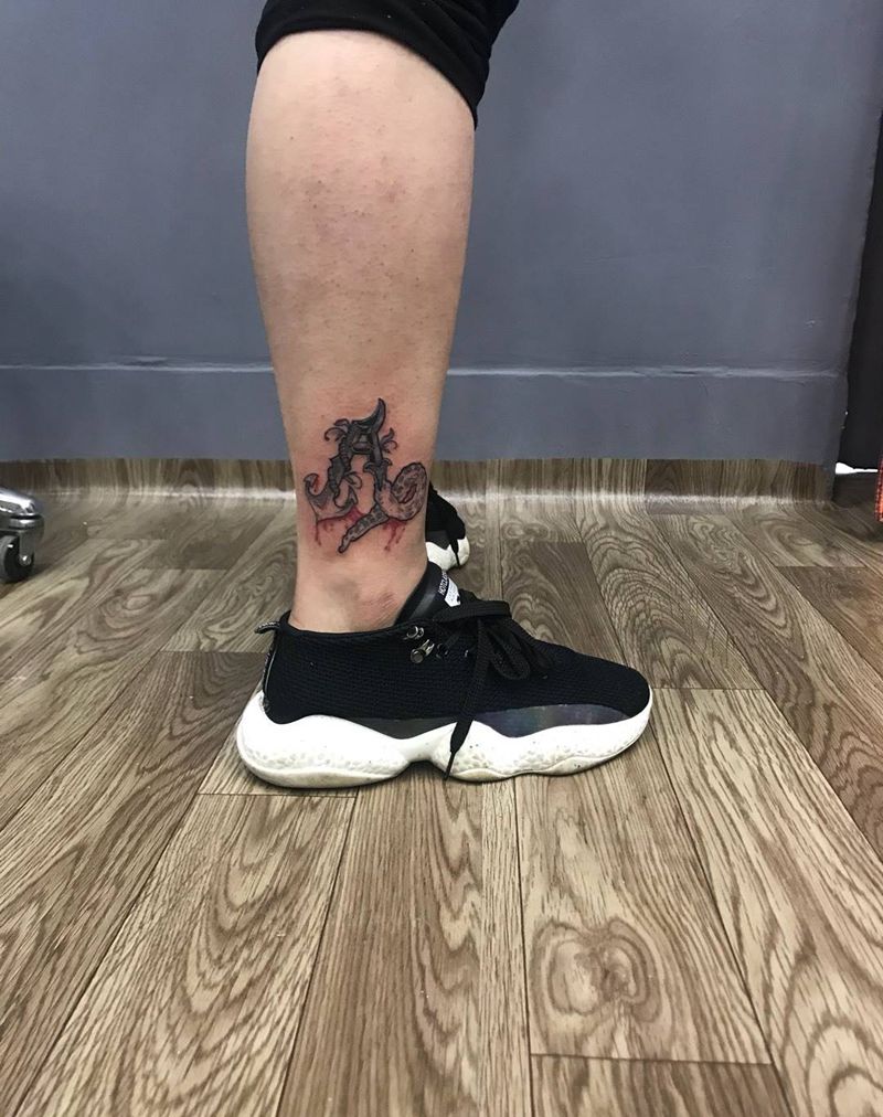 信仰纹身图片_脚部花体字纹身图案