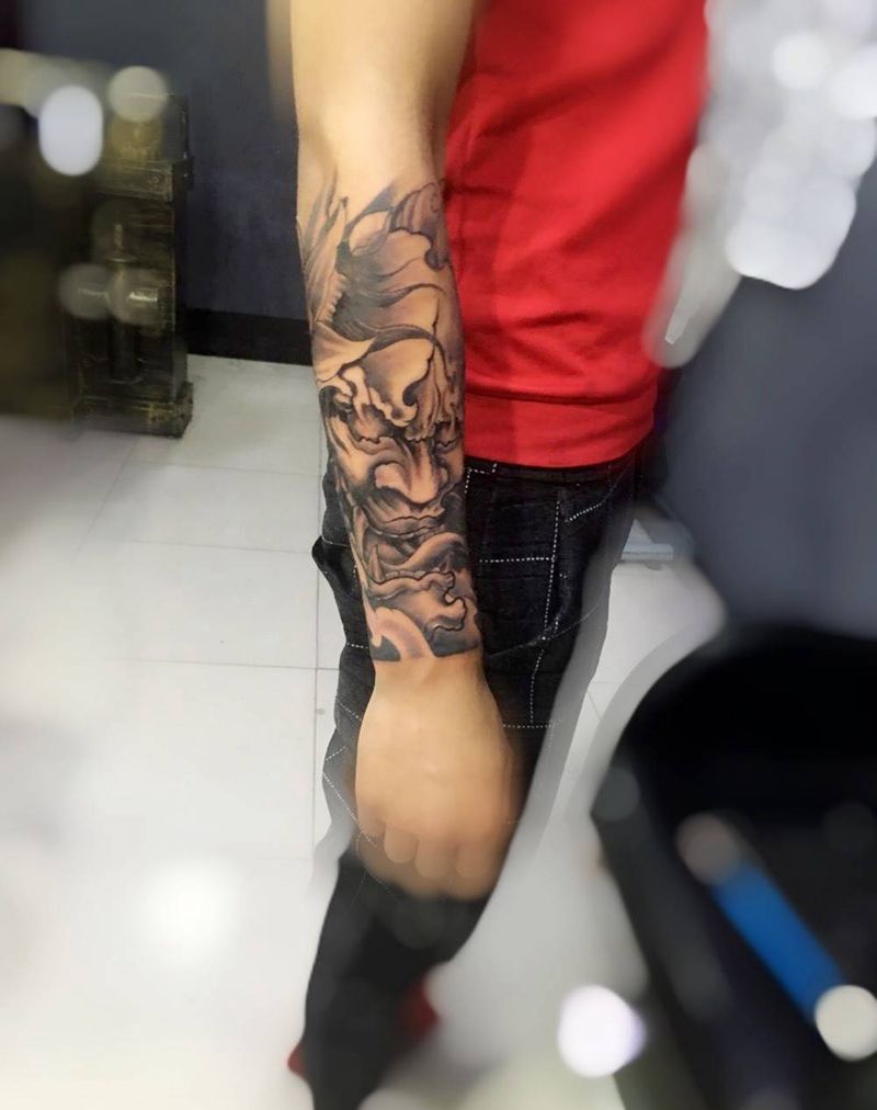 当前位置: 首页 >河北省保定市纹身店-星期八刺青纹身图案>般若包小臂纹身图片_成品手臂传统习俗鬼神宗教纹身图案