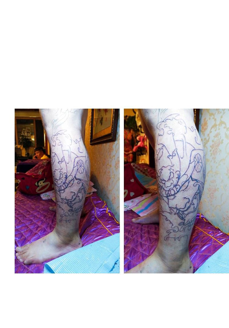 • T网红王老大花腿龙纹身图片_腿部新传统纹身图案