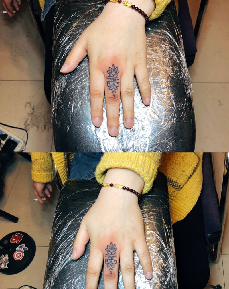 一组15张莲花纹身手
