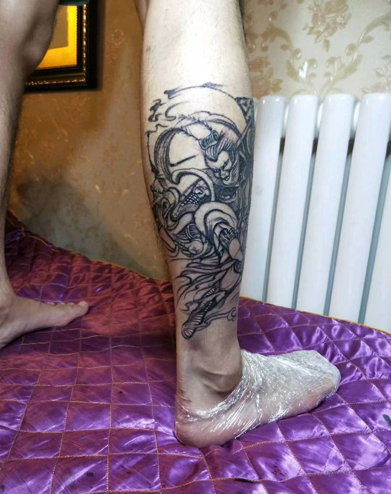 • T网红王老大花腿龙纹身图片_腿部新传统纹身图案