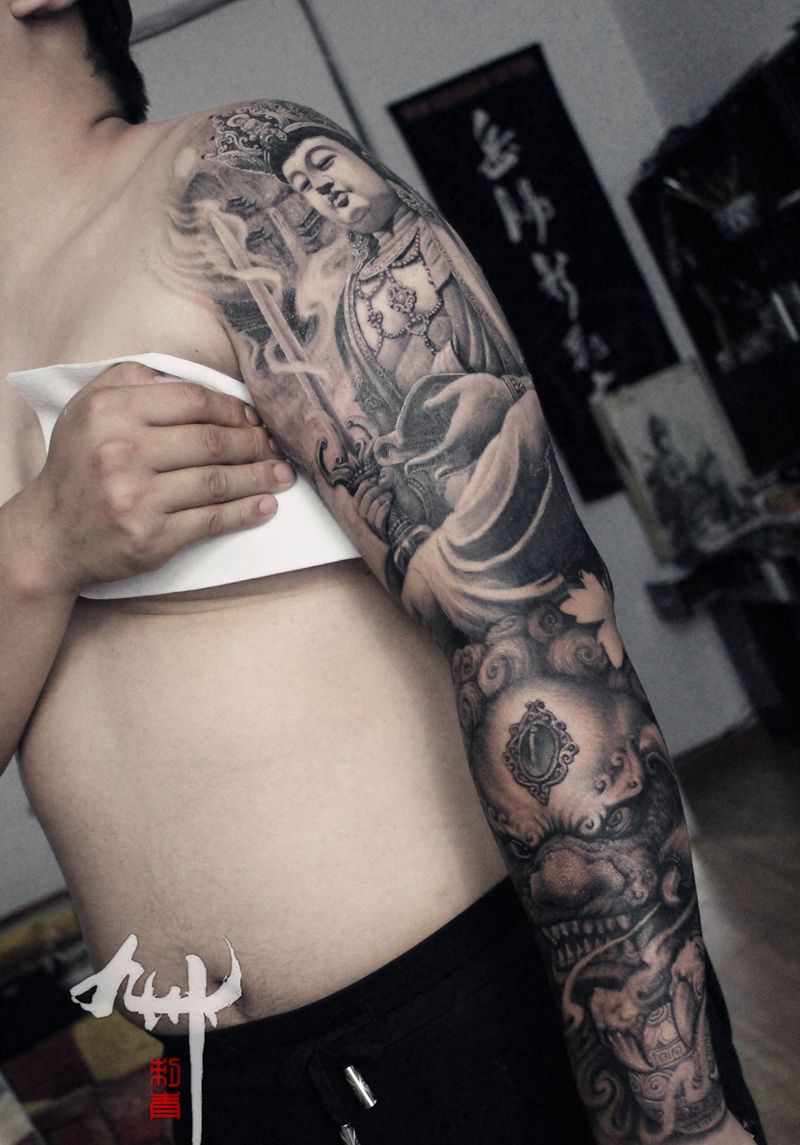 文殊菩萨纹身图片_手臂新传统原创纹身图案