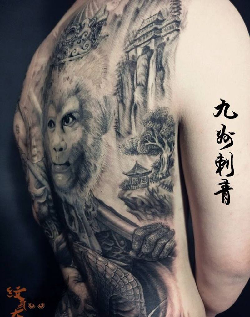 黑灰满背纹身图案