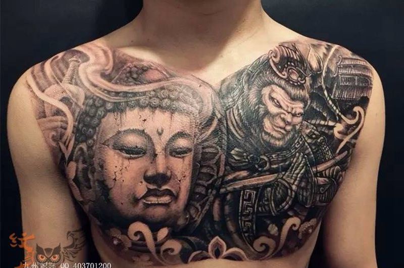 黑灰满背纹身图案