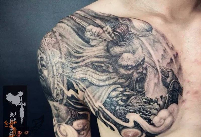 当前位置: 首页 >河北省张家口市纹身店-九州刺青纹身图案>大圣斗佛纹身图片