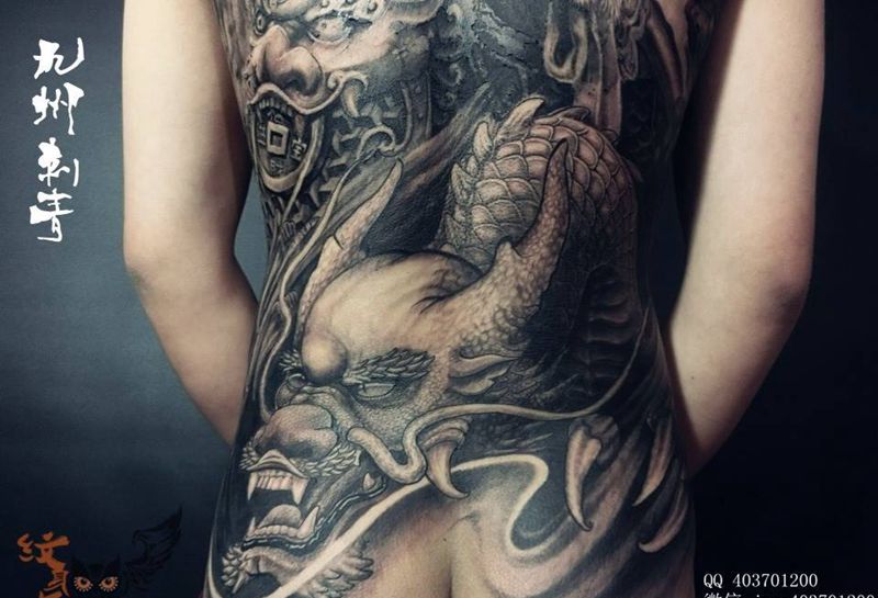 黑灰满背纹身图案