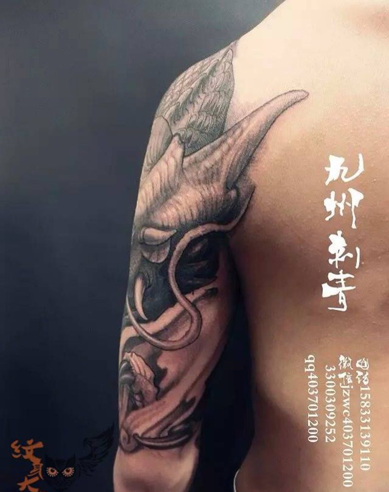 • 纹身吧推荐的披肩图腾半胛纹身图案作品展示