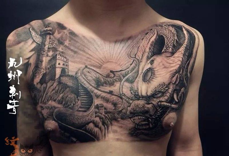 当前位置: 首页 >河北省张家口市纹身店-九州刺青纹身图案>龙守中华纹身图片