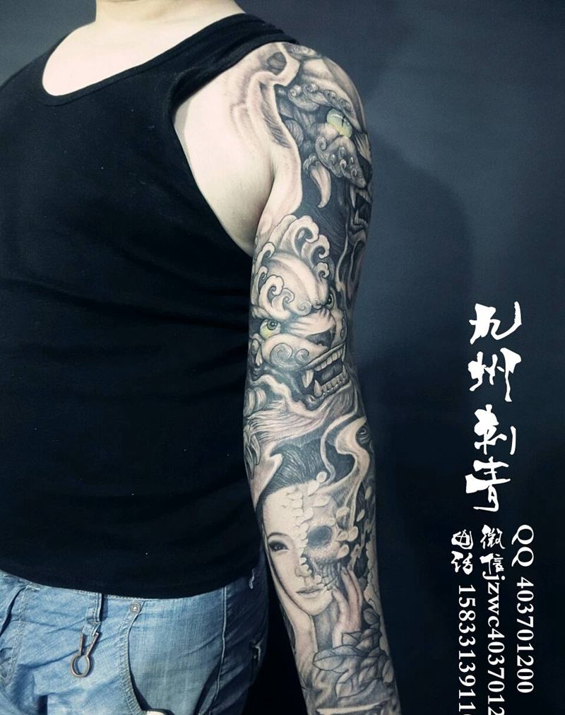 当前位置: 首页 >河北省张家口市纹身店-九州刺青纹身图案>福狮花臂纹身图片