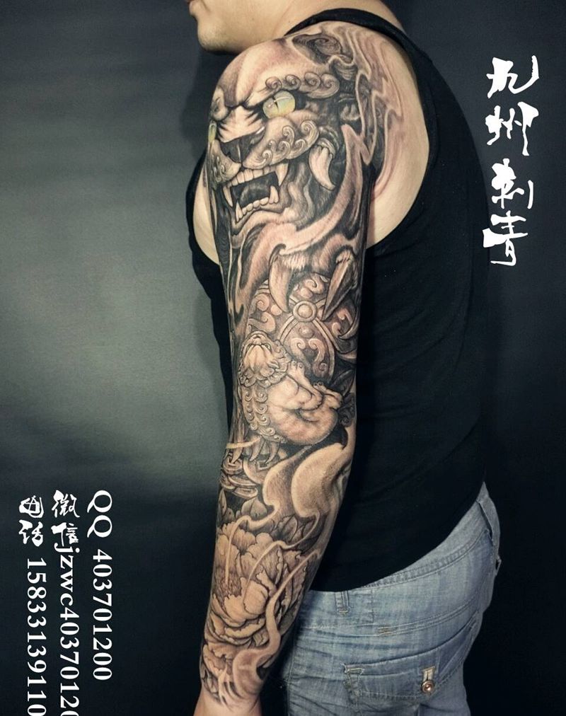 当前位置: 首页 >河北省张家口市纹身店-九州刺青纹身图案>福狮花臂纹身图片
