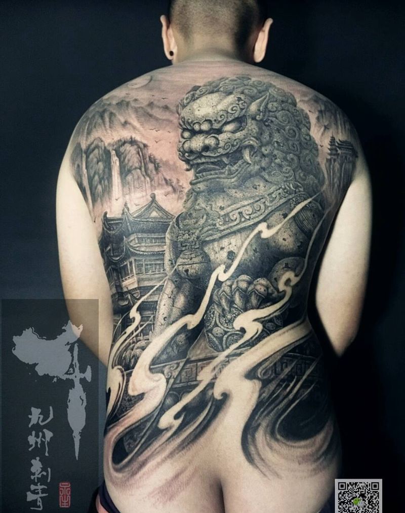 中华石狮纹身图片
