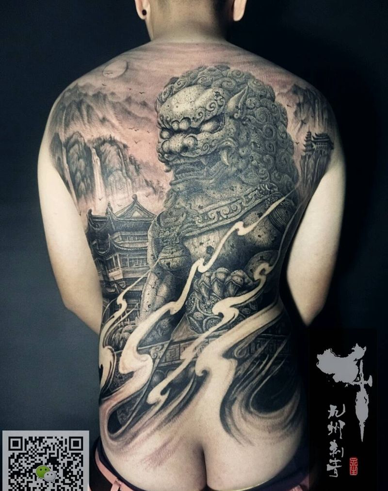 中华石狮纹身图片