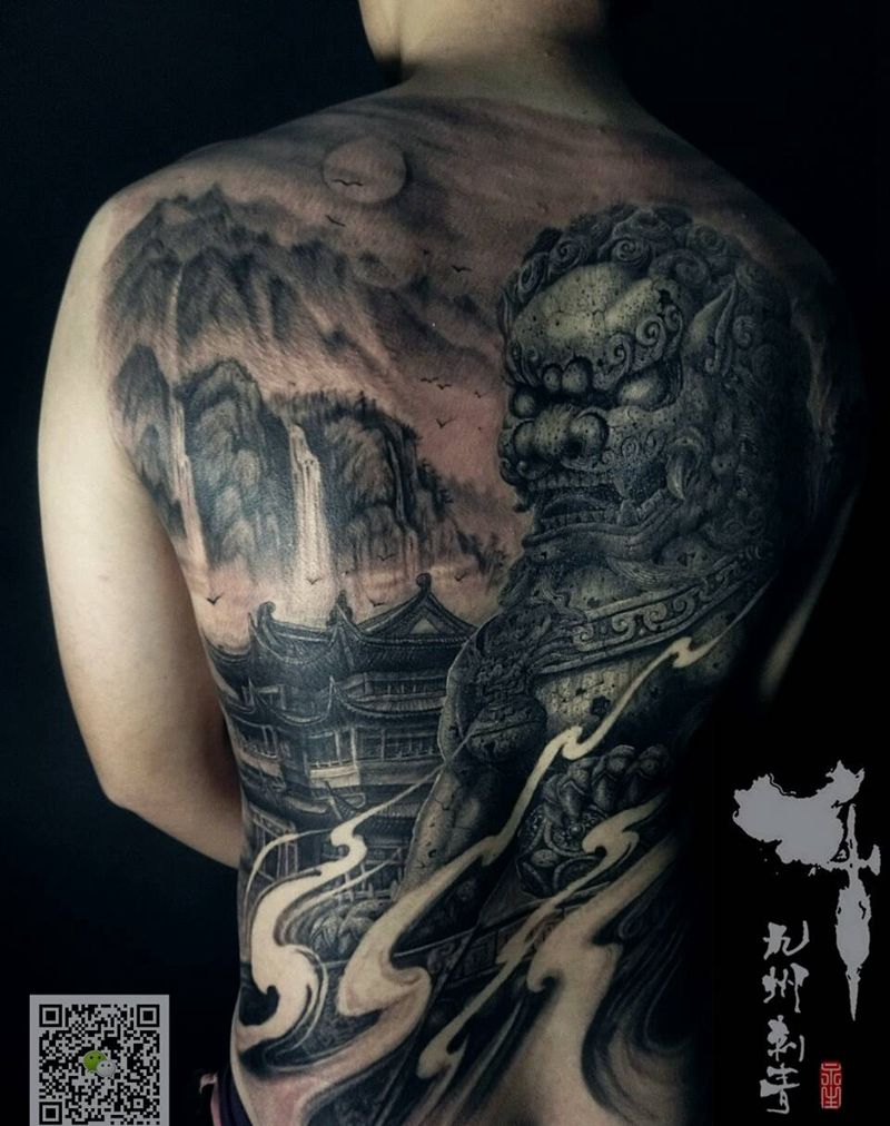 中华石狮纹身图片