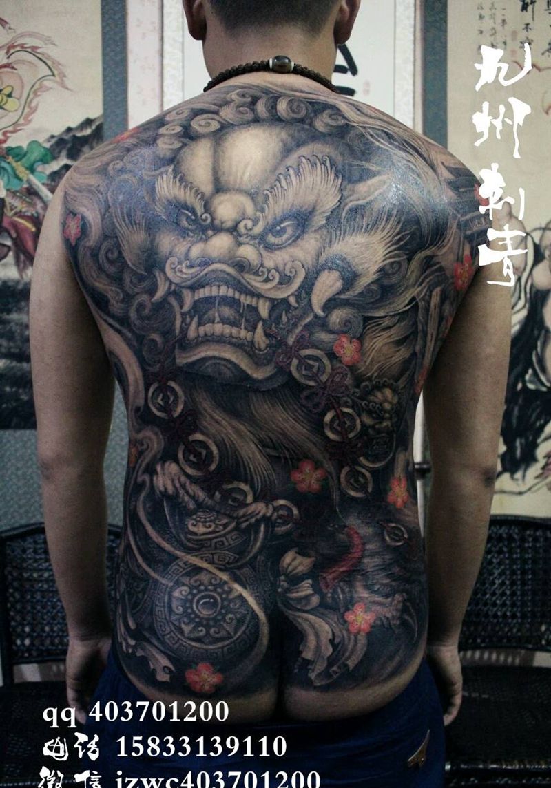 当前位置: 首页 >河北省张家口市纹身店-九州刺青纹身图案>福狮满背纹身图片