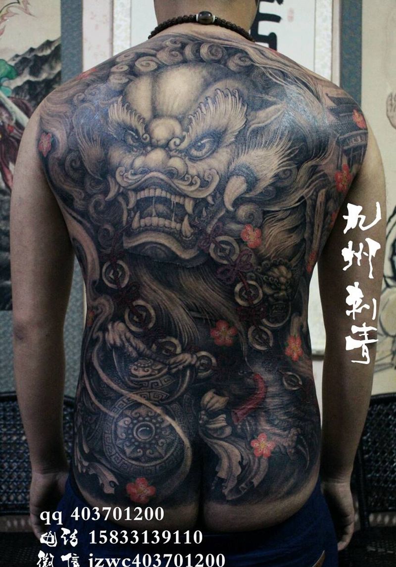 当前位置: 首页 >河北省张家口市纹身店-九州刺青纹身图案>福狮满背纹身图片