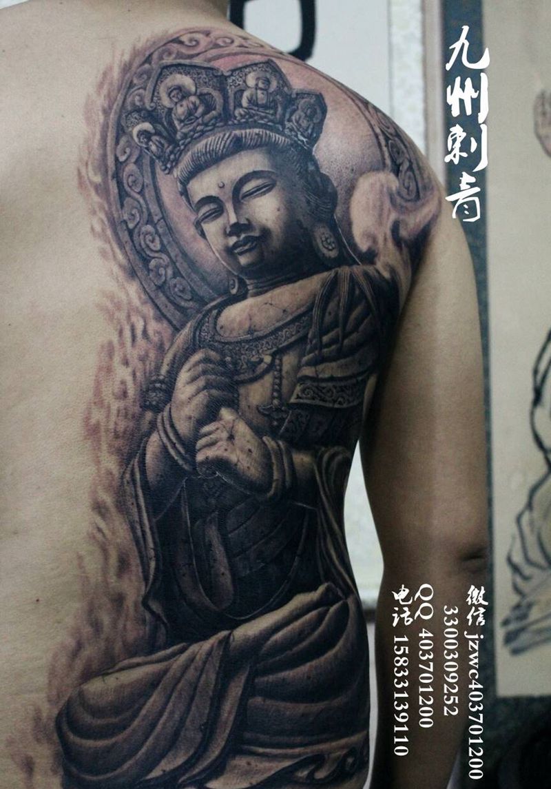 黑灰满背纹身图案