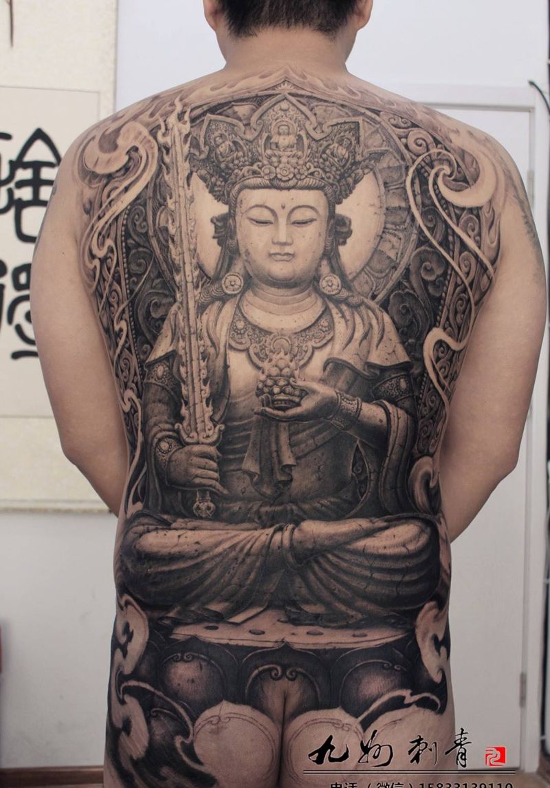 当前位置: 首页 >河北省张家口市纹身店-九州刺青纹身图案>石雕虚空藏菩萨纹身图片