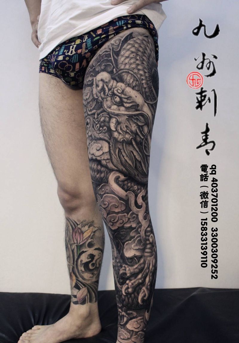 当前位置: 首页 >河北省张家口市纹身店-九州刺青纹身图案>石雕花腿龙纹身图片