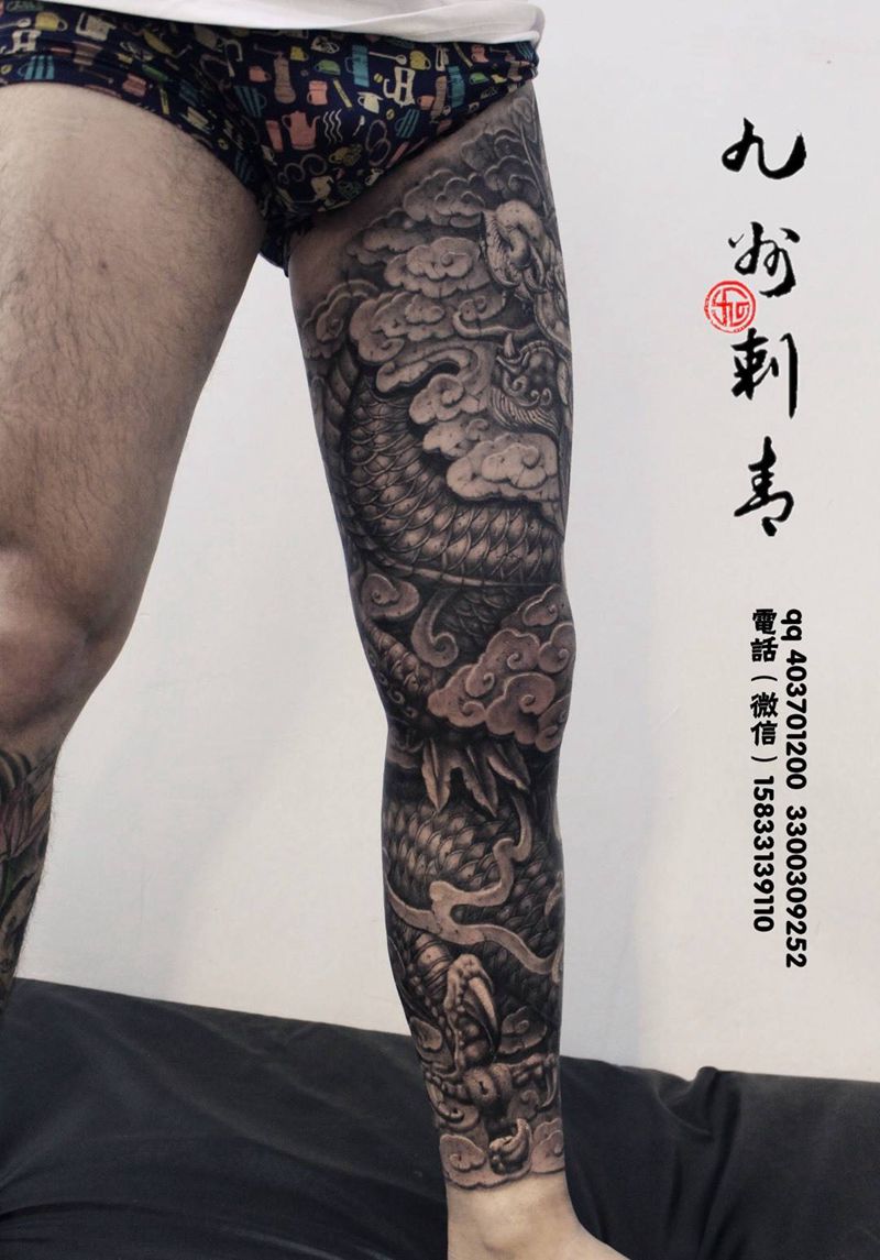 当前位置: 首页 >河北省张家口市纹身店-九州刺青纹身图案>石雕花腿龙纹身图片