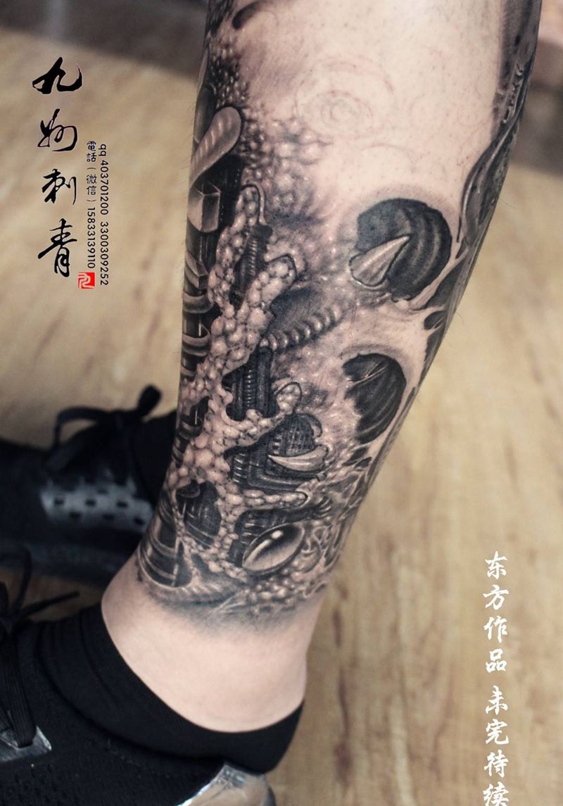 • T网红王老大花腿龙纹身图片_腿部新传统纹身图案