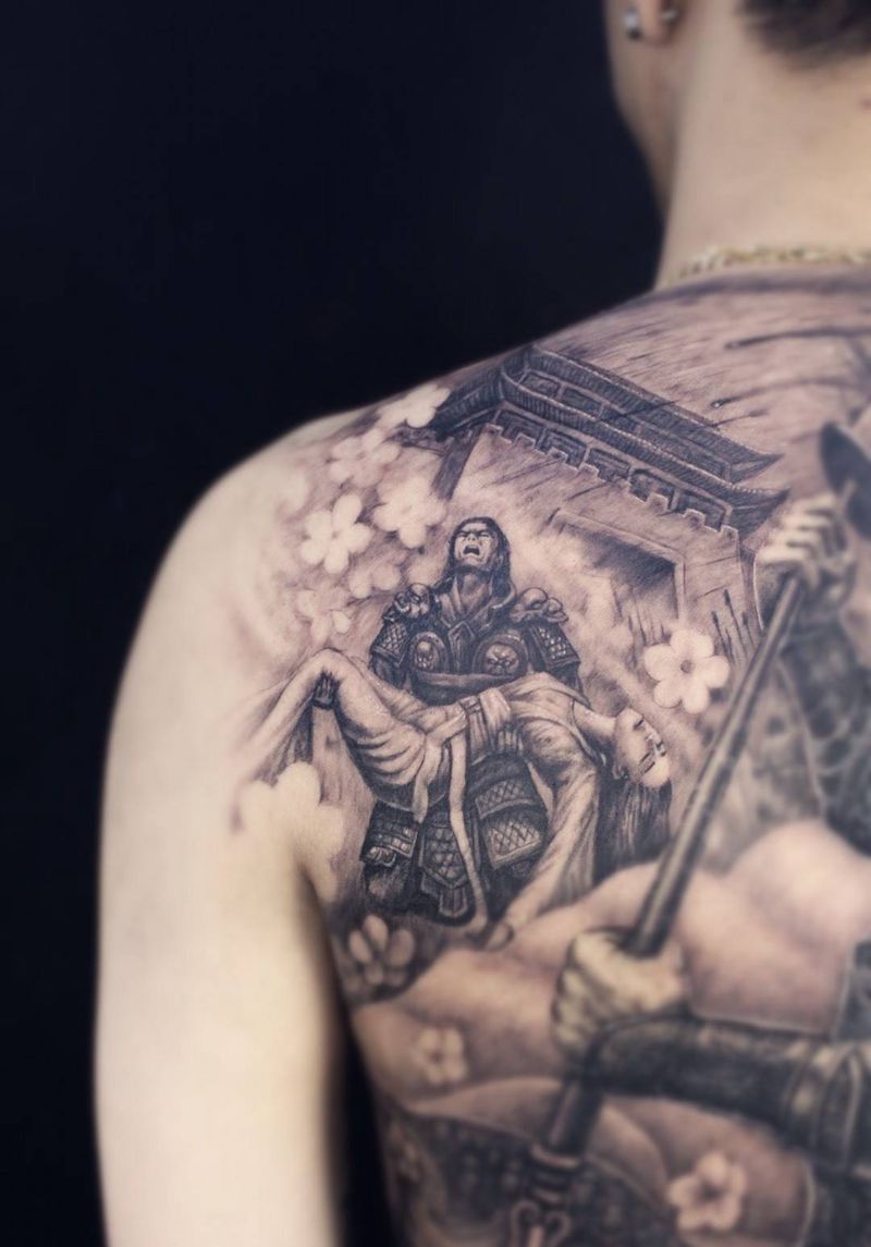 • 纹身吧推荐的披肩图腾半胛纹身图案作品展示