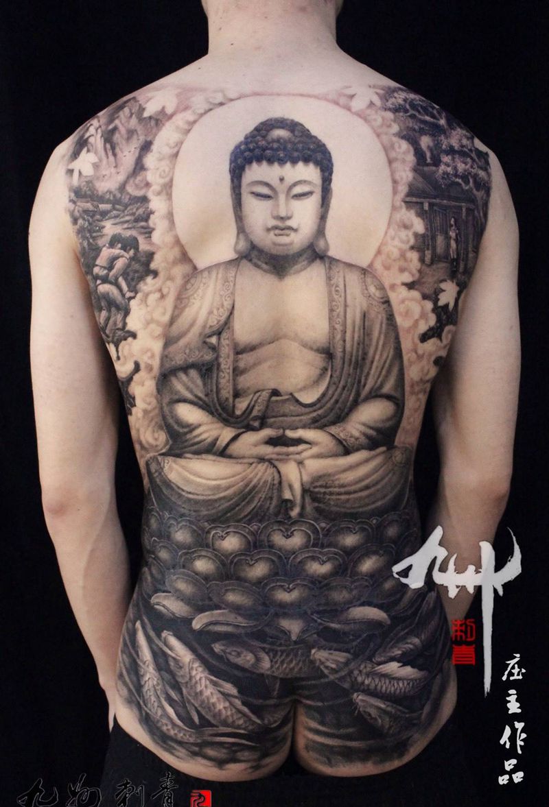 黑灰满背纹身图案