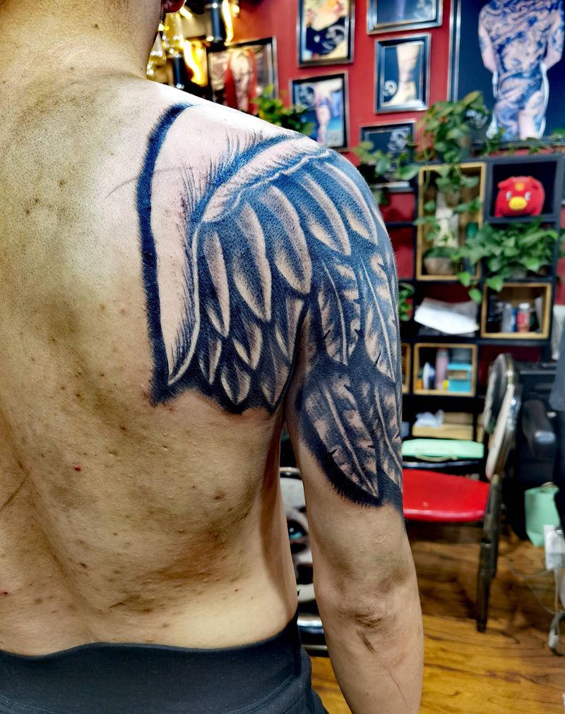 当前位置: 首页 >河北省张家口市纹身店-绝刺青纹身图案>翅膀纹身图片_肩部欧美写实纹身图案