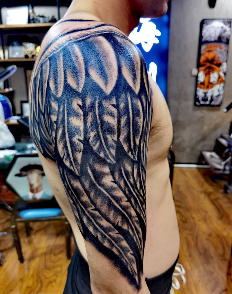 翅膀纹身图片_肩部欧美写实纹身图案