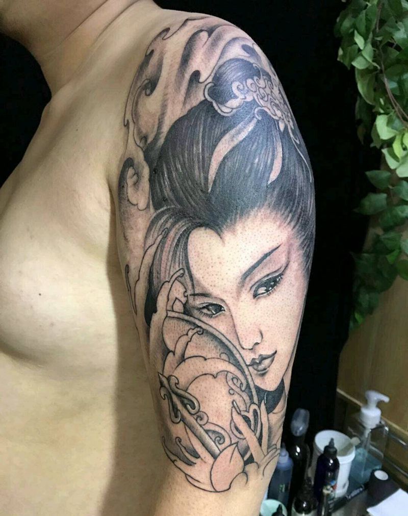 艺妓遮盖完成。纹身图片_肩部纹身图案