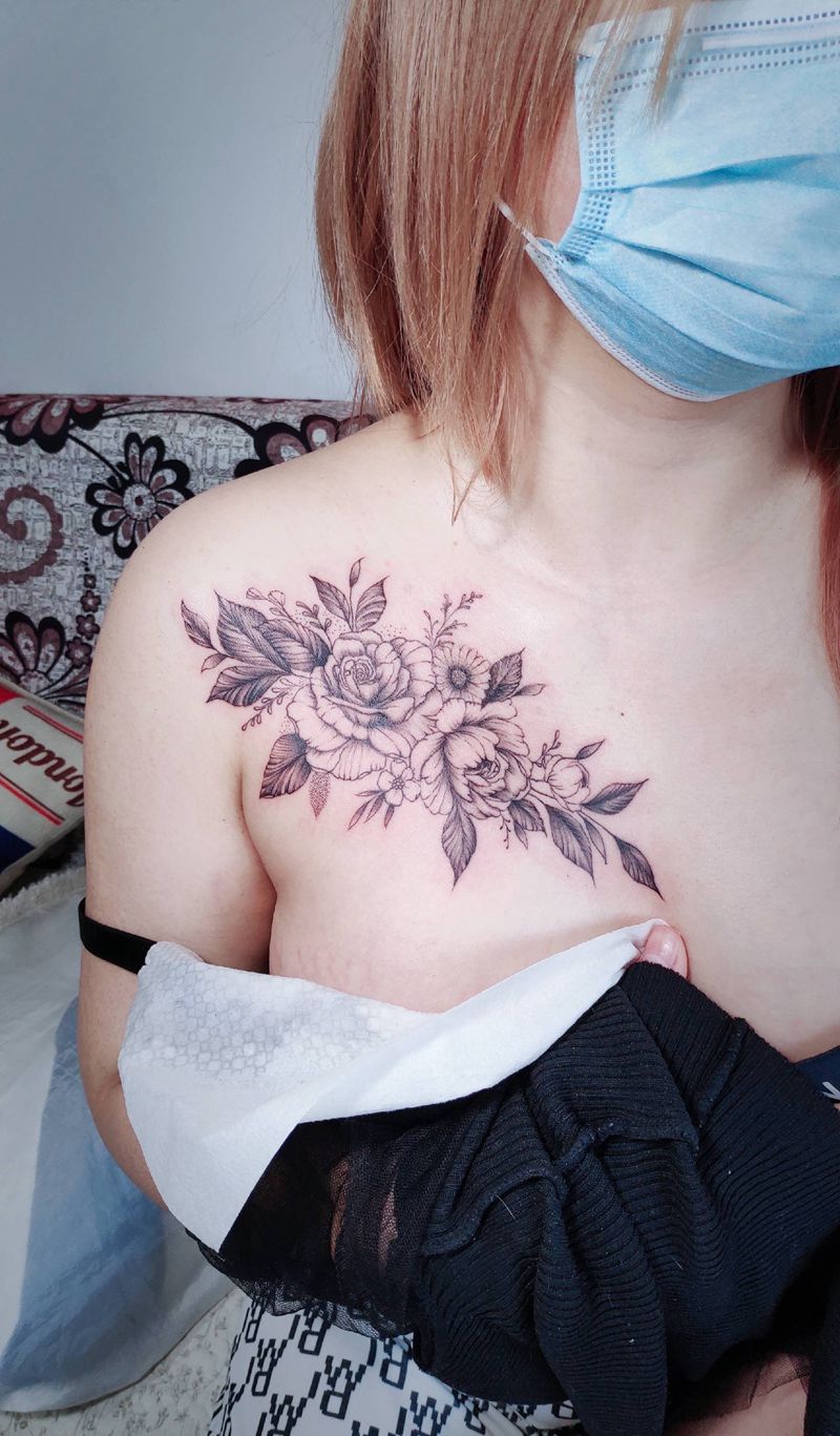 • 女性大花胸纹身_43张霸气漂亮的女性大花胸纹身图案作品