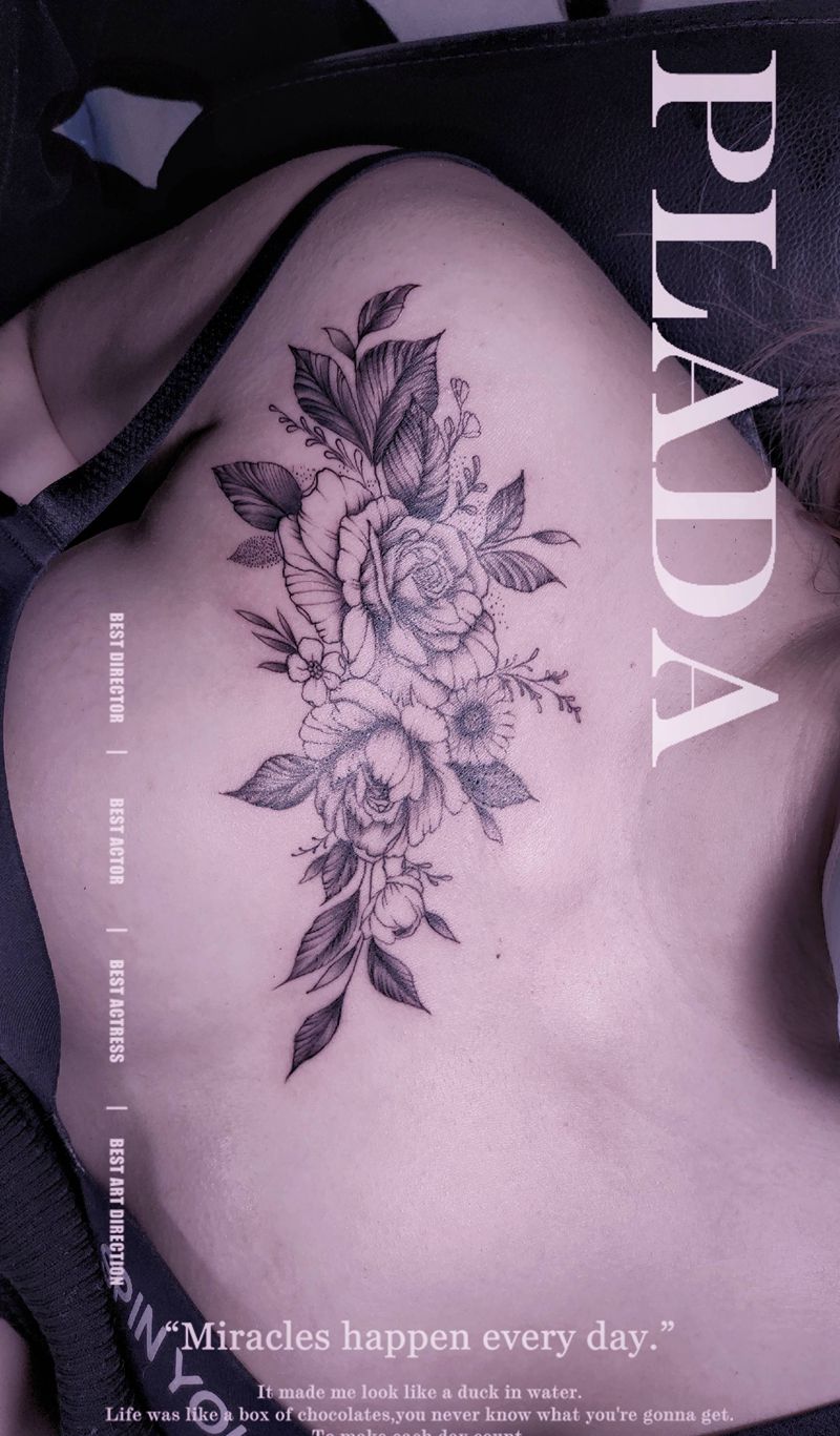 • 女性大花胸纹身_43张霸气漂亮的女性大花胸纹身图案作品