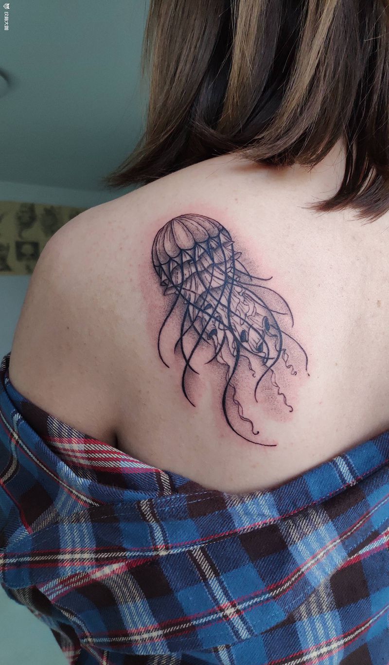 当前位置: 首页 >河北省张家口市纹身店-威刺青纹身图案>肩胛水母纹身图片_背部点刺欧美写实肩胛水母小清新纹身图案