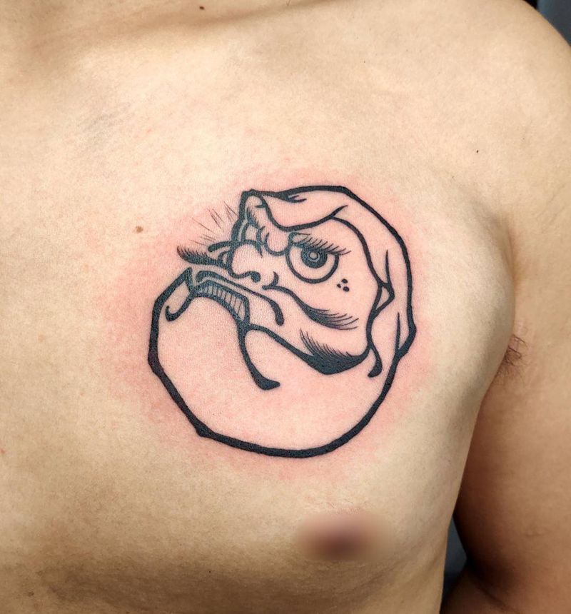 达摩蛋纹身图片_胸部老传统达摩蛋彩色纹身图案