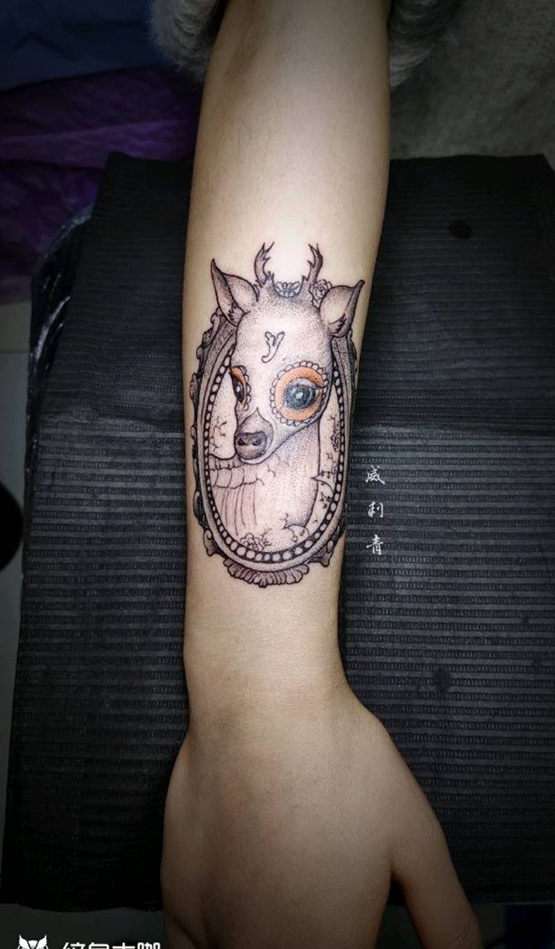 当前位置: 首页 >河北省张家口市纹身店-威刺青纹身图案>鹿纹身图片_手臂点刺线条纹身图案