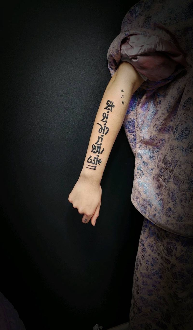 当前位置: 首页 >河北省张家口市纹身店-威刺青纹身图案>六字真言纹身图片_手臂文字纹身图案