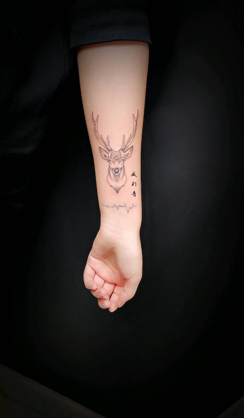 当前位置: 首页 >河北省张家口市纹身店-威刺青纹身图案>手臂•鹿纹身图片_手臂点刺小清新鹿纹身图案