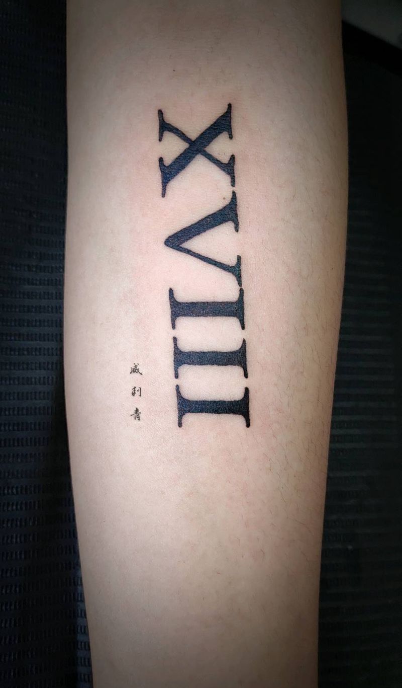 当前位置: 首页 >河北省张家口市纹身店-威刺青纹身图案>不朽纹身图片_手臂花体字罗马数字英文纹身图案