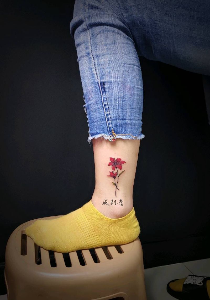 胜火纹身图片_腿部脚踝小清新纹身图案