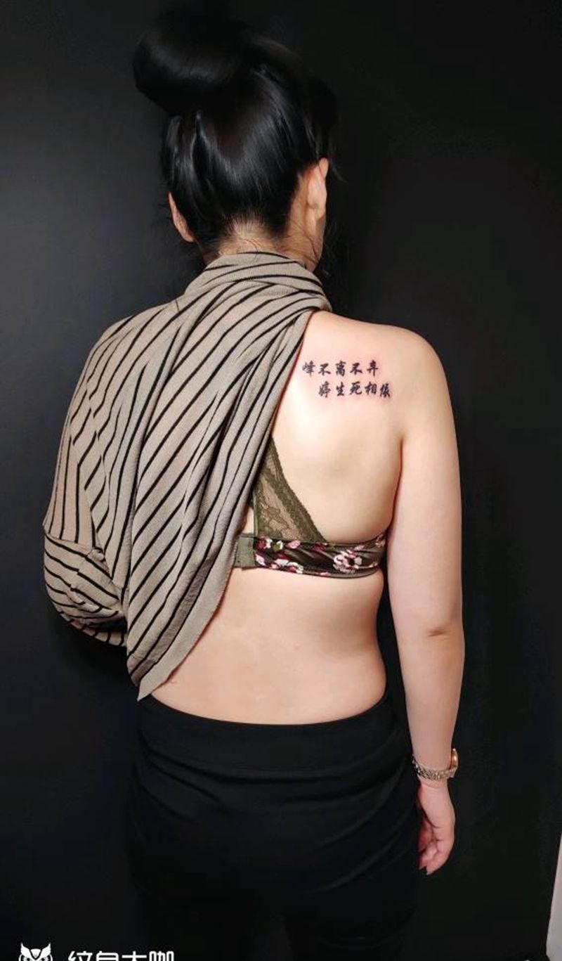 勇敢爱纹身图片_背部后肩汉字纹身图案