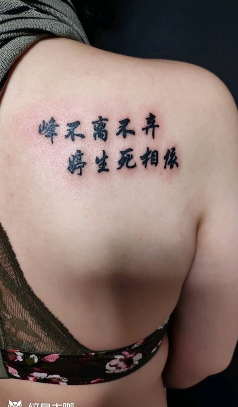 勇敢爱纹身图片_背部后肩汉字纹身图案