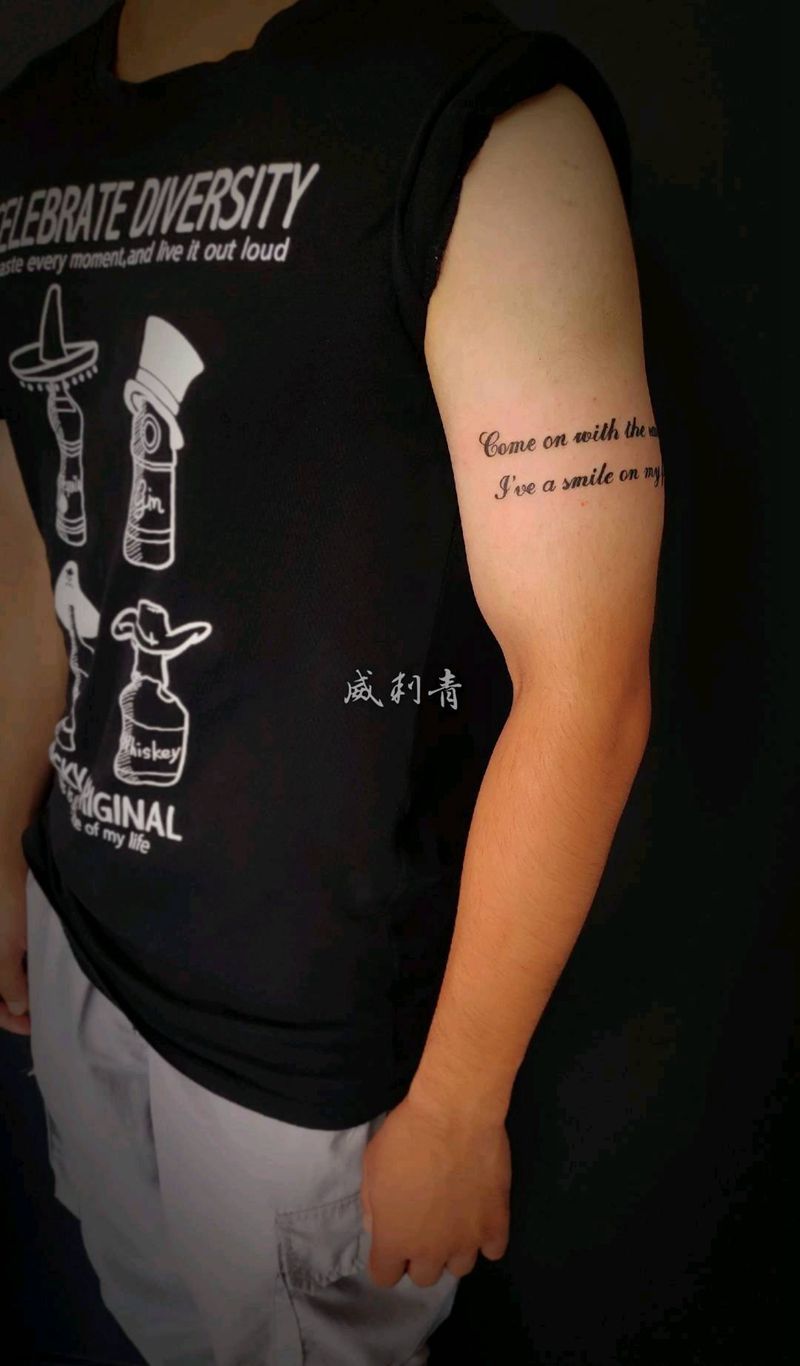当前位置: 首页 >河北省张家口市纹身店-威刺青纹身图案>英文纹身图片_手臂花体字歌词纹身图案