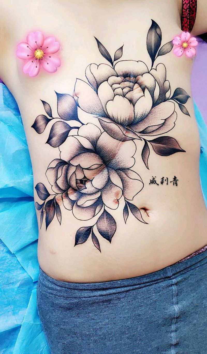 遮盖疤痕纹身图片_腹部遮盖纹身图案