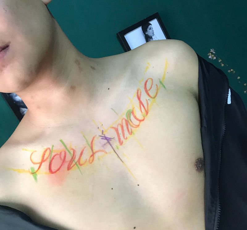 当前位置: 首页 >河北省承德市纹身店-成尧TATTOO纹身图案>花胸花体字纹身图片_胸部纹身图案