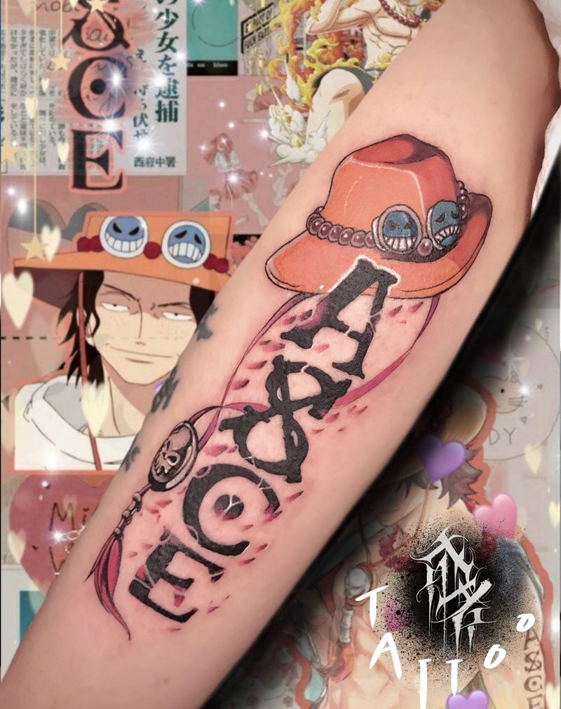 海贼王艾斯纹身图片_手臂New School海贼王纹身图案