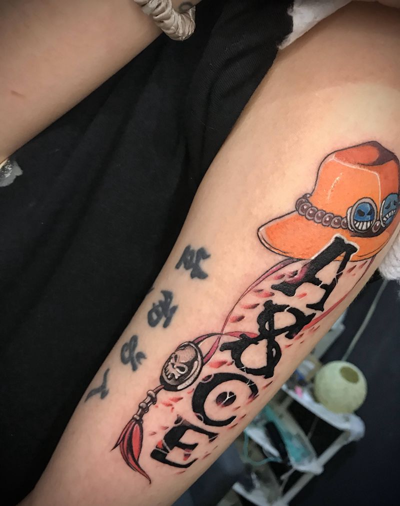 海贼王艾斯纹身图片_手臂New School海贼王纹身图案